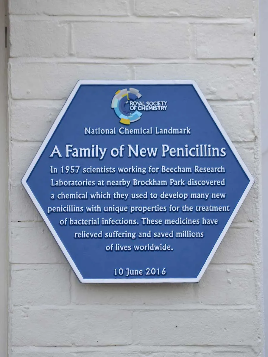In 1957 scientists working for Beecham Research Laboratories at nearby Brockham Park discovered a chemical which they used to develop many new penicillins with unique properties for the treatment of bacterial infections. These medicines have relieved suffering and saved millions of lives worldwide.