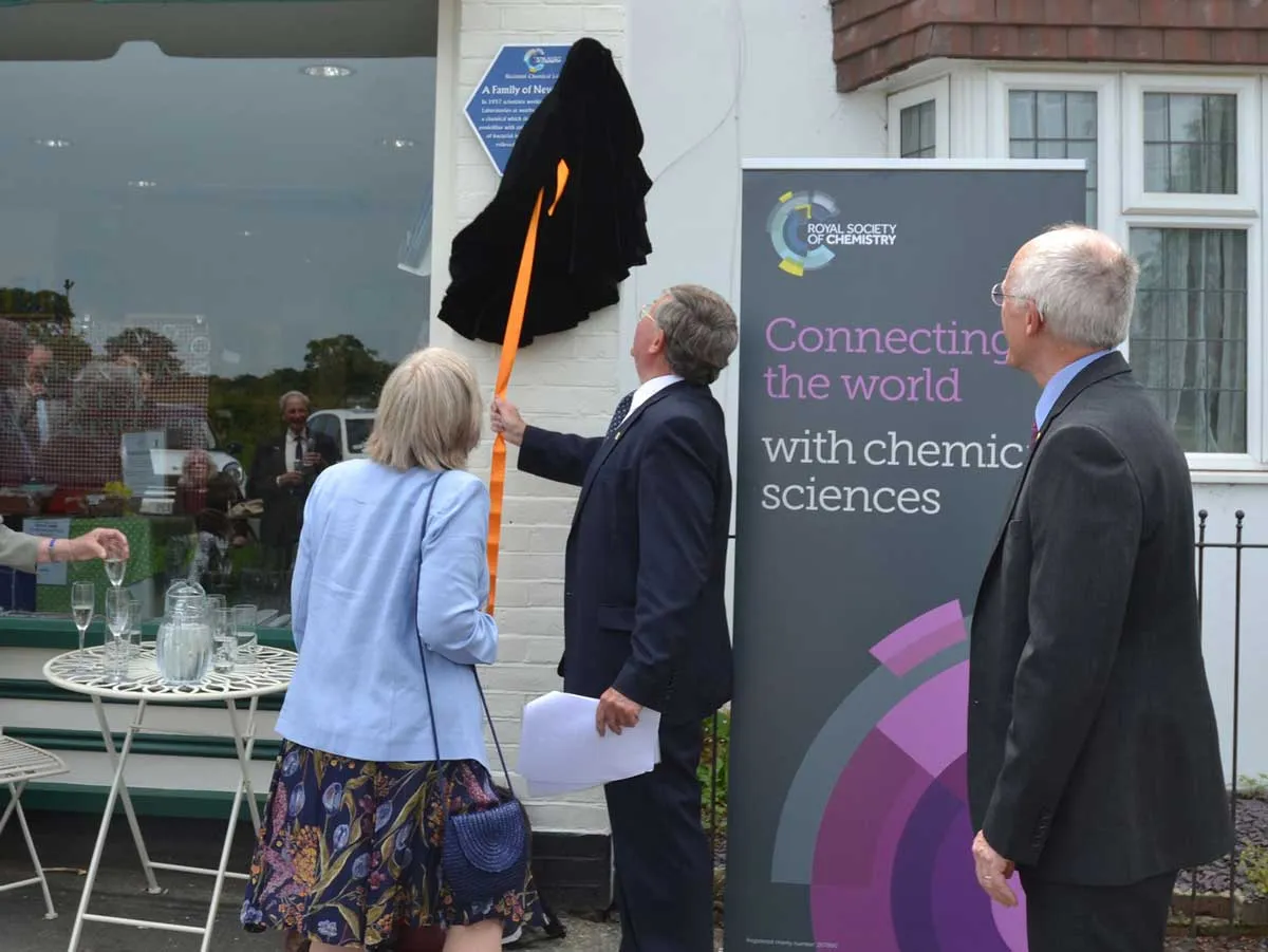 A National Chemical Landmark plaque has been unveiled on the Community Shop at Strood Green in Surrey, near the former site of Beecham Research Laboratories.