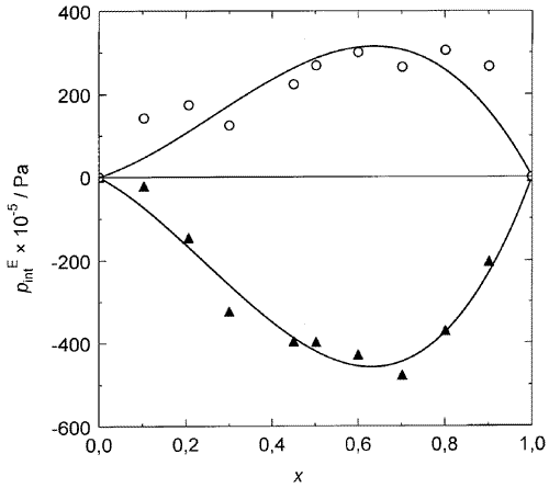 The last sentence of the "Examples" should be changed as follows: The excess and the deviation can have opposite signs even in the whole mole fraction range, as is illustrated in Fig. 2.
