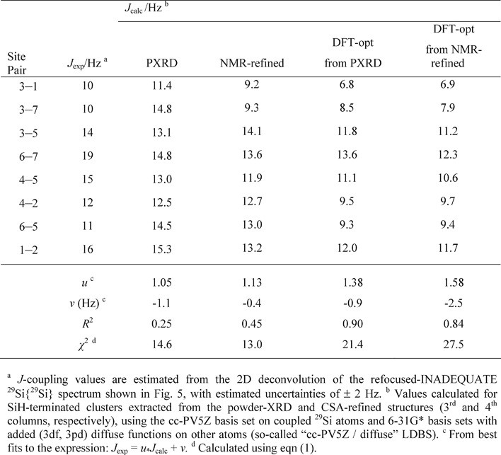 Table 3. Experimental and calculated 2J(29Si–O–29Si) coupling constants measured for siliceous zeolite ZSM-12.